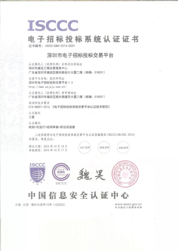 2015年,成功通過驗收,正式轉為示范城市。2016年又成為全國首個通過國家三星檢測認證的電子招標投標交易平臺。