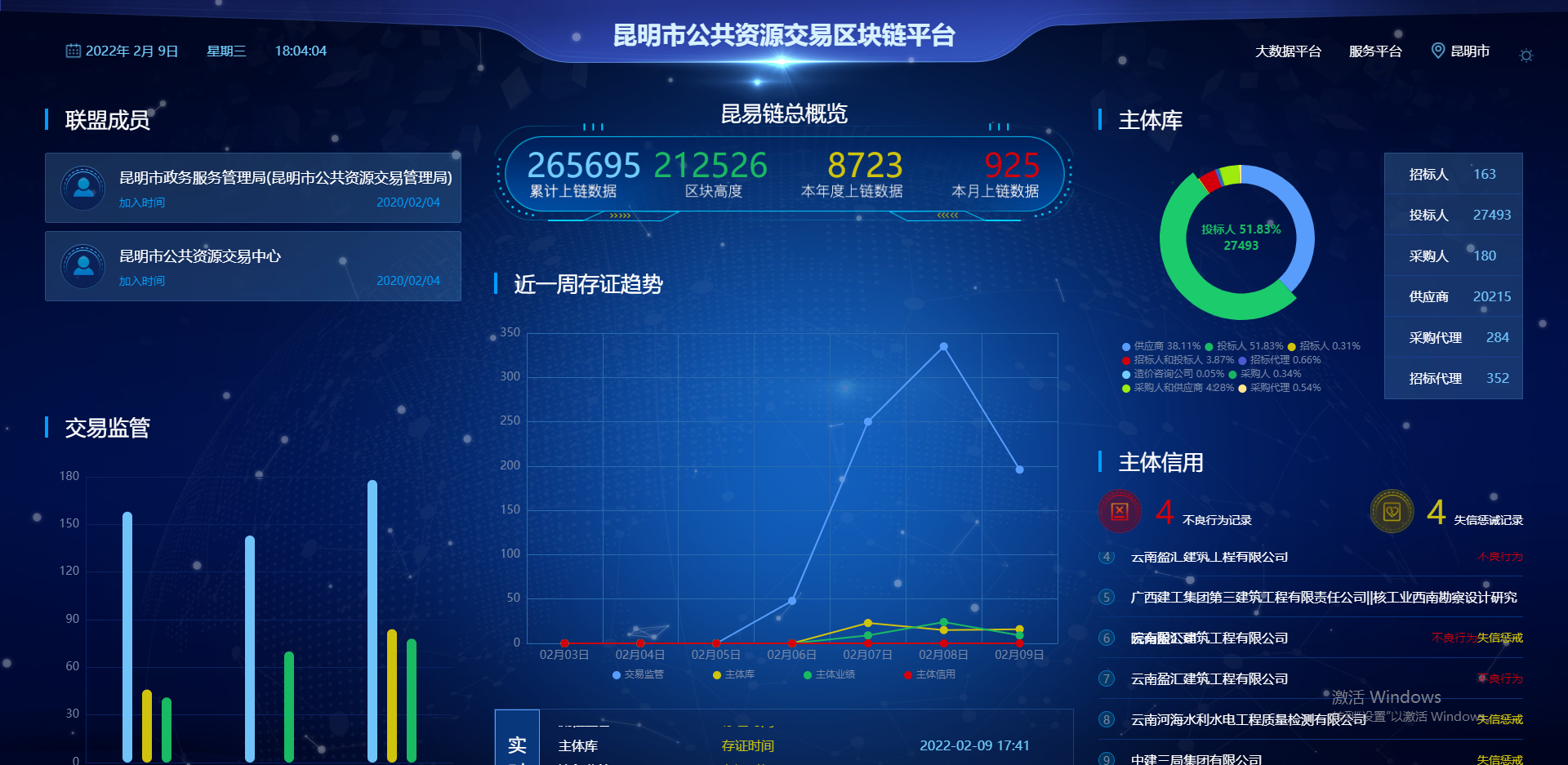 “昆易鏈”運用區塊鏈技術去中心化、公開透明、不可篡改、可追溯、多方維護等特點將業務層與騰訊區塊鏈底層支撐層相結合,完成涵蓋工程建設、政府采購、綜合交易等多個領域的業務數據、主體庫數據、業績庫數據、信用庫數據的存證、查驗及數據公開,對篡改情況及時預警,結合市“四+一”智慧監督體系,形成了“區塊鏈服務+區塊鏈電子證據+智慧監督”的公共資源交易監督新模式。